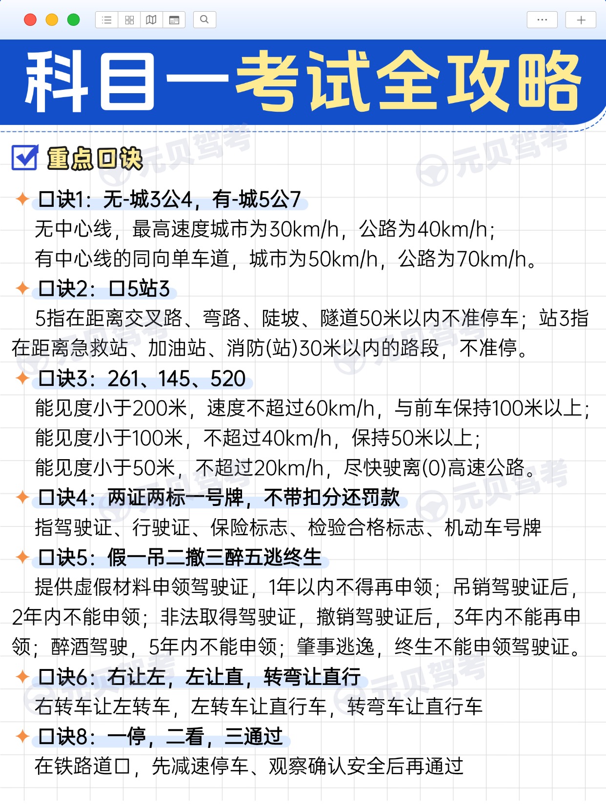 科目一答题技巧归纳,看完这29条口诀,一分不扣!