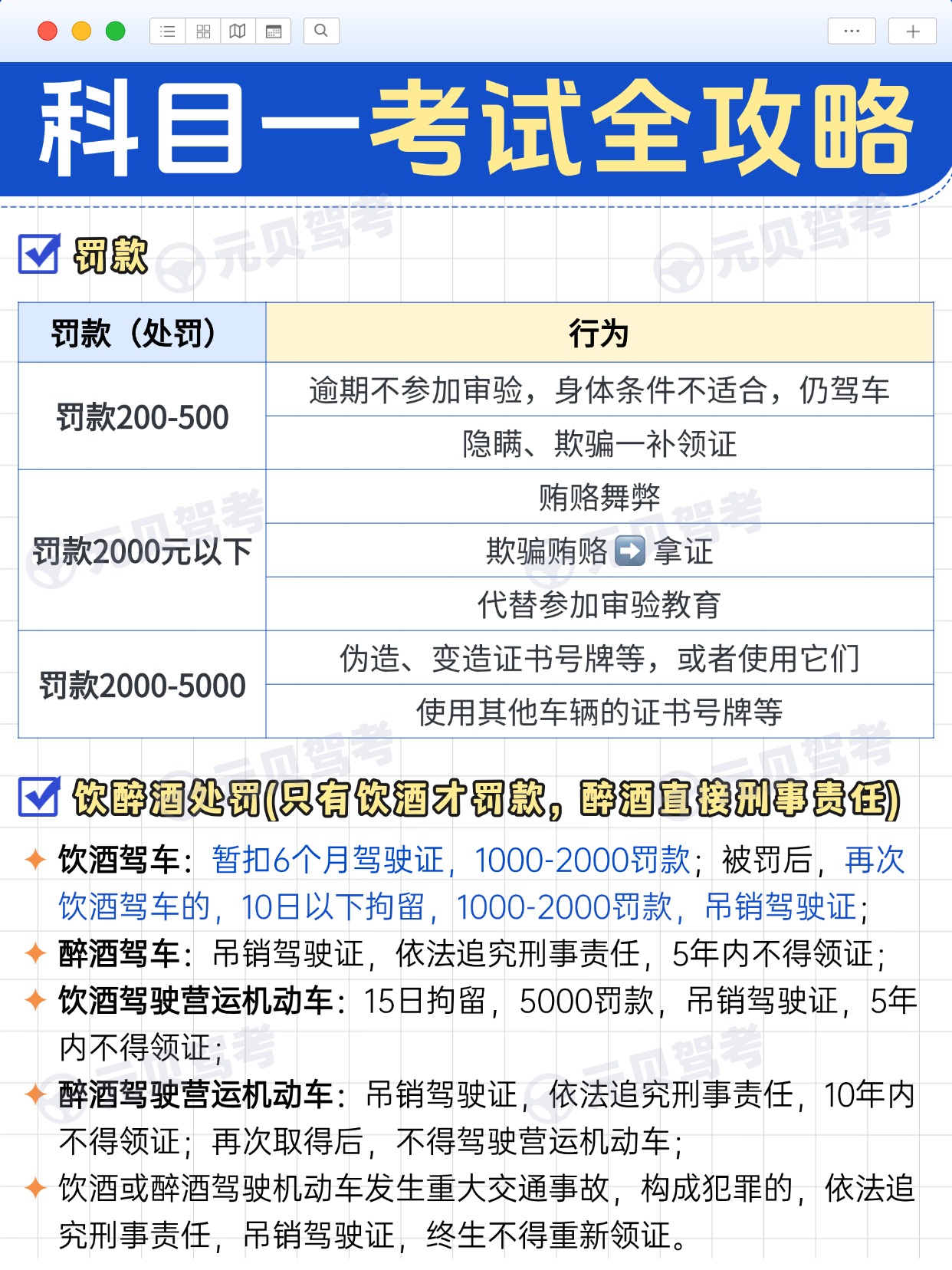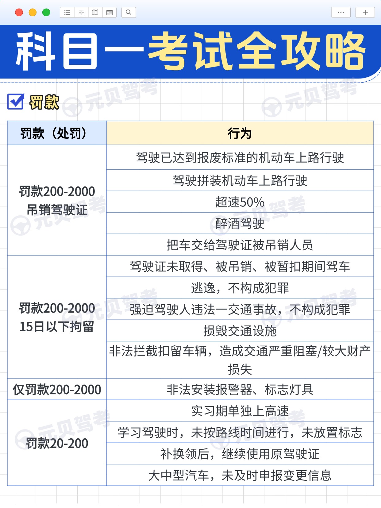 科目一哪些情况罚款200-2000?看一遍就能记住